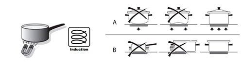 Brug af gryder med en flad bund og en diameter svarende til, eller lidt større end, det opvarmede område, anbefales.