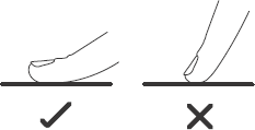 - Brug midten af din finger, ikke spidsen.